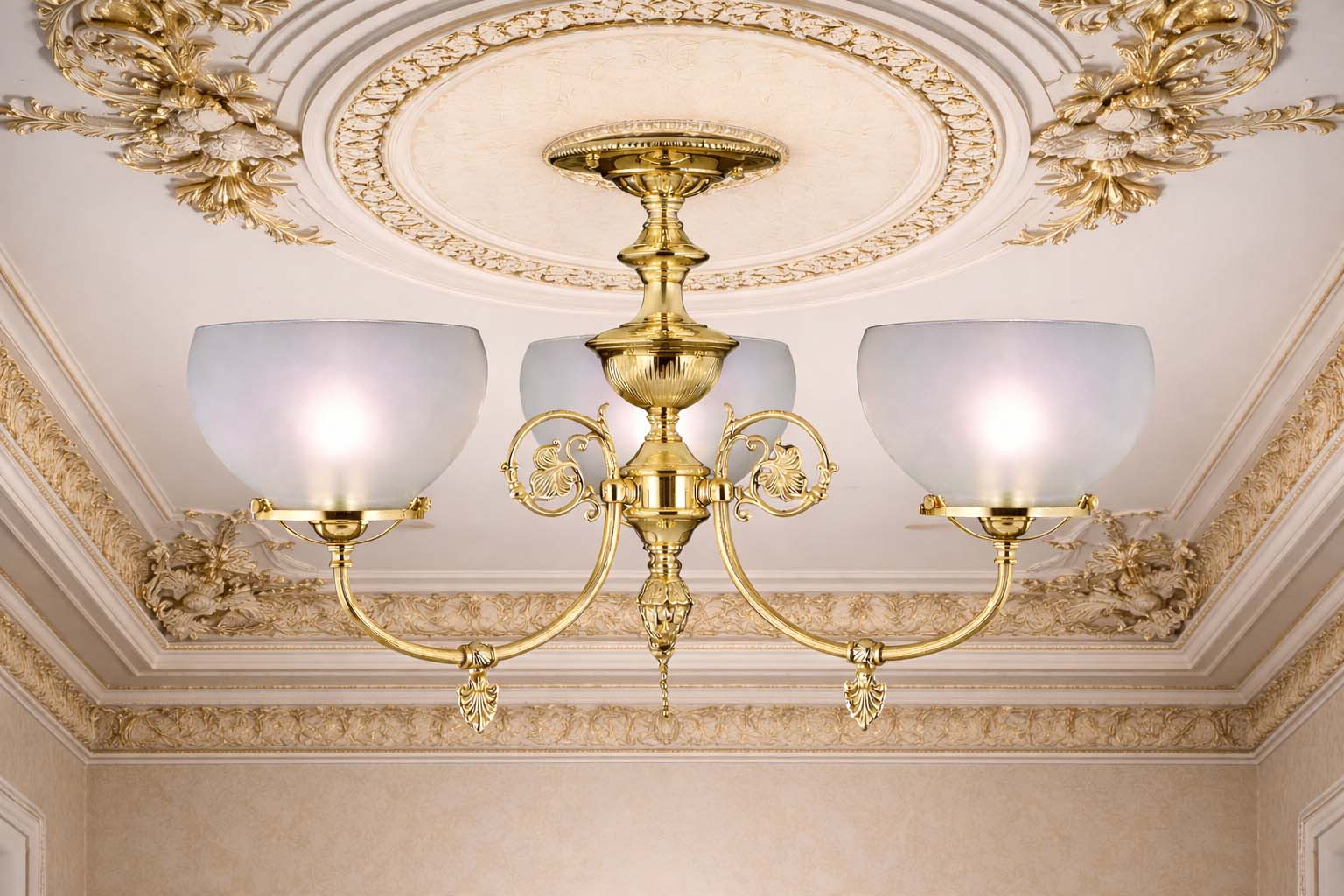 3-Light Polished Brass Chancery Flush / Semi-Flush Mount